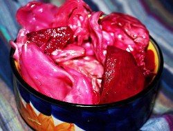 Великолепный вкус достигается благодаря использованию специй и приправ, а свекла наполняет ее насыщенным красно-пурпурным цветом и вносит свои вкусовые изюминки. Эту маринованную капусту невозможно спутать ни с какой другой.