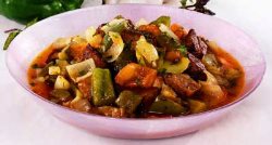 Поместив кусок мяса в ледяную воду, варим на мощном пламени, после этого слегка убавляем, иногда снимая пену с кастрюли. Варим бульон два часа. Пока доходит бульон, готовим овощи: режем кольцами лук и поджариваем его в разогретом маслице. Добавляем свежую пасту. К луку кидаем огурчики и мясо, заливаем все это добро бульоном, таким образом, чтобы покрыть внутренность кастрюли. Тушим мясцо полчаса, добавляем специи, мелкий чеснок.