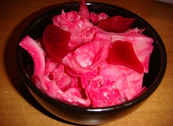 Режем капусту крупно. Для улучшения вкусовых и внешних качеств добавим свеклу. Кроме того, можно воспользоваться, как добавками, сельдереем, разными сортами перца, морковью. Любители восполняют вкус семенами пряных трав, специями.